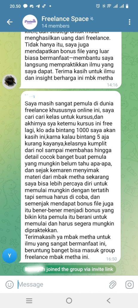 Kelas ini cocok untuk pemula, ibu rumah tangga, mahasiswa, dan siapa saja yang ingin memulai karir freelance dari nol.